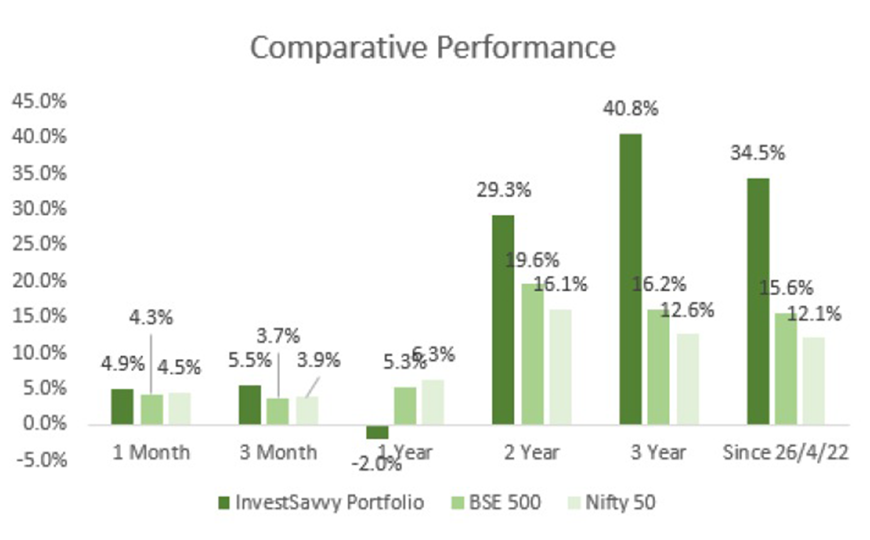 We are happy to share with you that we have completed three years for InvestSavvy Portfolio Management’s, “Alpha Fund”. The fund has given a return of 40.8% for the three year and 34.5% annually since inception.